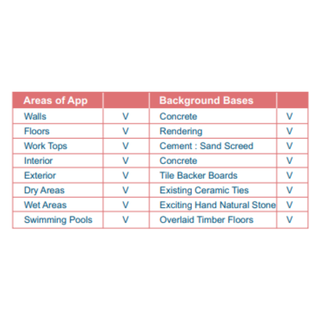 This adhesive is ideal for tiles with 300mm x 300mm) tiles. It's suitable for vertical and horizontal application, indoors and outdoors, in both dry and wet areas
